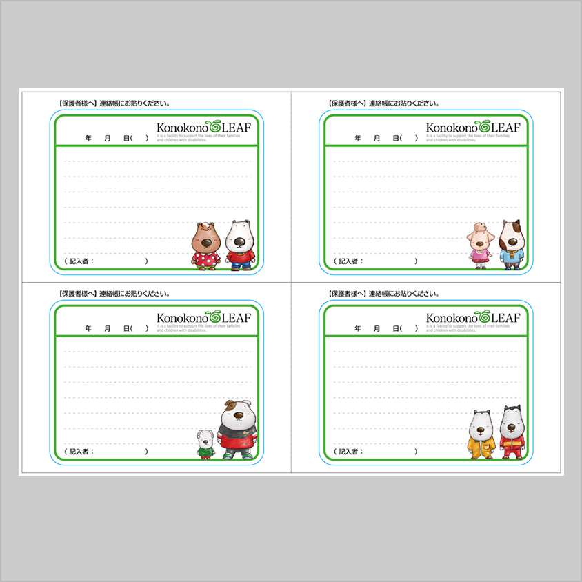 ・連絡帳を生徒が忘れた際、代わりに記入し後日連絡帳に貼ります。